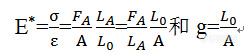 在拉伸、压缩和弯曲测试中测得的是杨氏模量或称弹性模量,在剪切测试中得到的是剪切模量。在动态力学分析中,用力的振幅FA和位移的振幅LA来计算复合模量。出于实用的考虑,用所谓的几何因子g将刚度和模量两个量的计算标准化。
